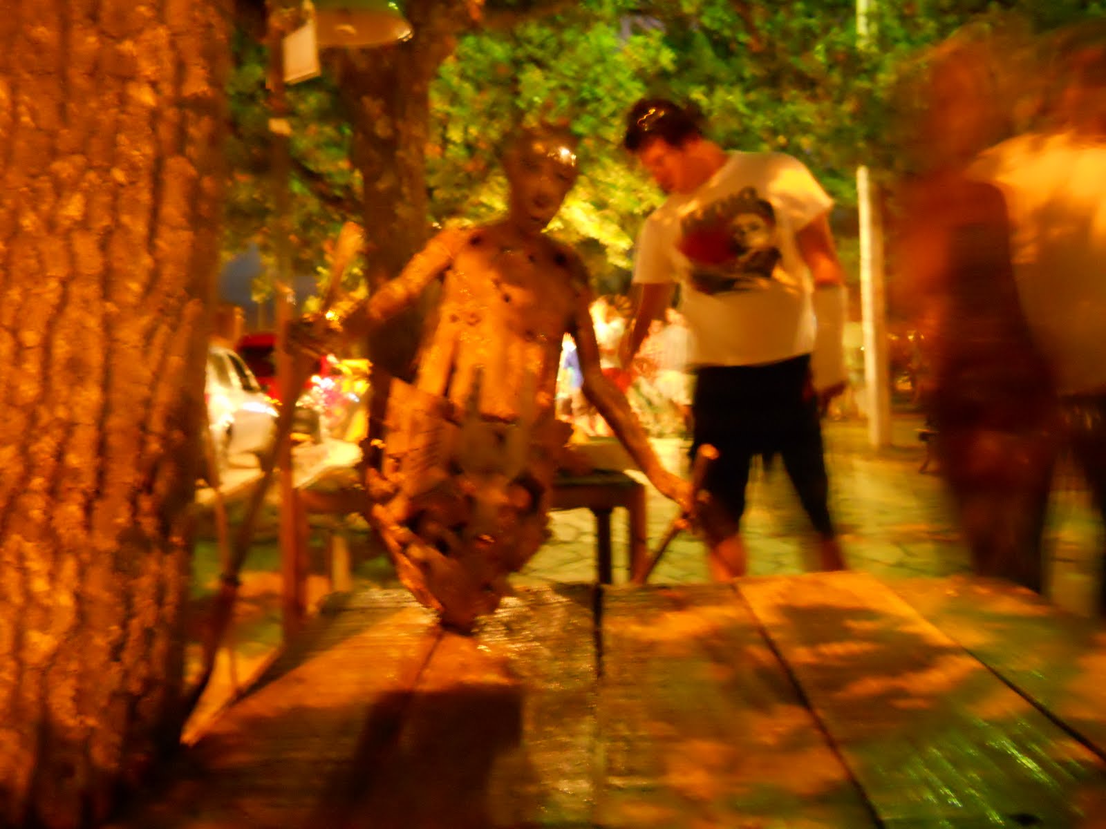 Estas son fotos que tomé anteayer en mi viaje a Nono, Traslasierras, que es mi lugar favorito en el mundo.Vi a Moris caminando por la plaza de Nono, era tarde por la noche. Y vi las esculturas de artistas que estuvieron allí durante un encuentro, las obras han quedado para que las veamos los visitantes, una excelente idea, muy generosa.